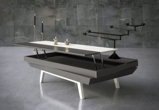 Μοντέρνο με elegant design, πολυχρηστικό και πολυμορφικό. Κατασκευάζεται σε δρυ, σε καρυδιά, σε λάκα ή σε συνδυασμό των παραπάνω υλικών. Με δυνατότητα περιστροφής ή επέκτασης το τραπέζι αυτό μπορεί να εξυπηρετήσει πολύ μεγάλη παρέα και να στολίσει μοναδικά το σαλόνι σας. Μπορεί να συνδυαστεί με πολλές συνθέσεις τοίχου από τη συλλογή μας. Το τραπεζάκι More κατασκευάζεται σε διαστάσεις, ξύλο και χρώματα επιλογής του πελάτη.