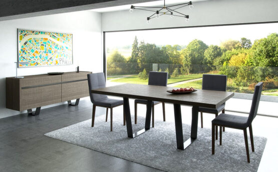 Ξύλο και μέταλλο δένουν αρμονικά σε ένα τραπέζι που τραβάει τα βλέμματα με τις λιτές του γραμμές και την επιβλητική του παρουσία στο χώρο. Συνδυάζεται με τον μπουφέ Wοοd, την τραπεζαρία Wood αλλά και με πολλές συνθέσεις και τραπεζαρίες από τις συλλογές μας. Το τραπέζι Wood κατασκευάζεται σε διαστάσεις, ξύλο και χρώματα επιλογής του πελάτη.