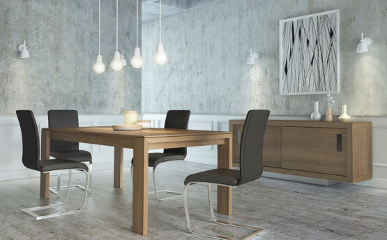 Απλές γραμμές και elegant καμπύλες δημιούργησαν μία λιτή και μοντέρνα πρόταση για κάθε στυλ διακόσμησης. Συνδυάζεται με διάφορους μπουφέδες από τη συλλογή μας. Η τραπεζαρία Plaza κατασκευάζεται στη διάσταση του χώρου σας, σε όλα τα χρώματα του δρυ και δέχεται προεκτάσεις.